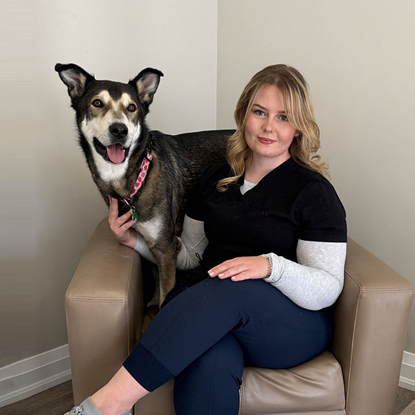 Outside the clinic, Meghan enjoys long hikes with her Husky-Shepherd, Finnley, diving into a good murder mystery, or expressing her creativity through oil painting. She values good company, shared laughter, and the occasional snort-laugh that may just brighten someone’s day.